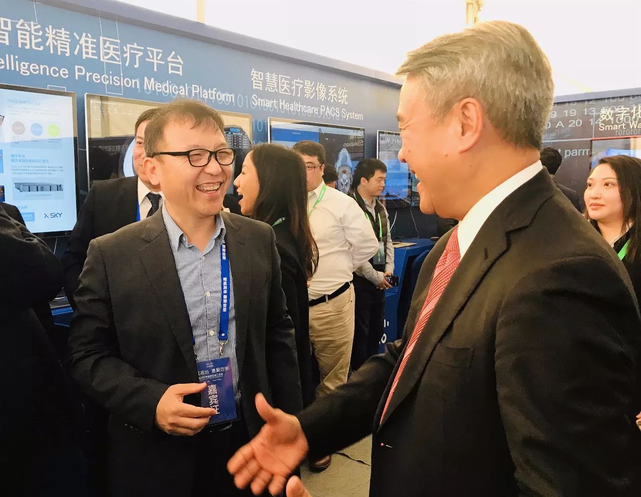 图为刘柏呈董事长与思科大中华区董事长陈仕炜进行深入沟通