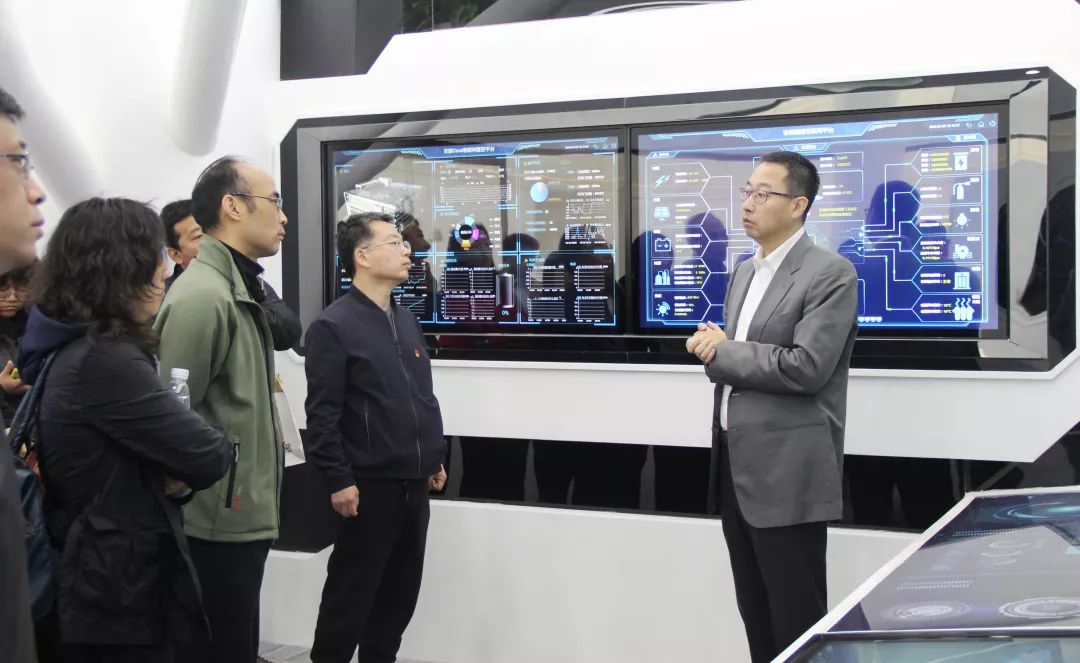 北京经济技术开发区规划局、规划设计中心领导一行首先参观了谈求吧物联展厅,了解谈求吧物联的最新科技成果,包括Coral物联网综合管控平台、BIM和数字孪生技术、人工智能、MR技术等等。