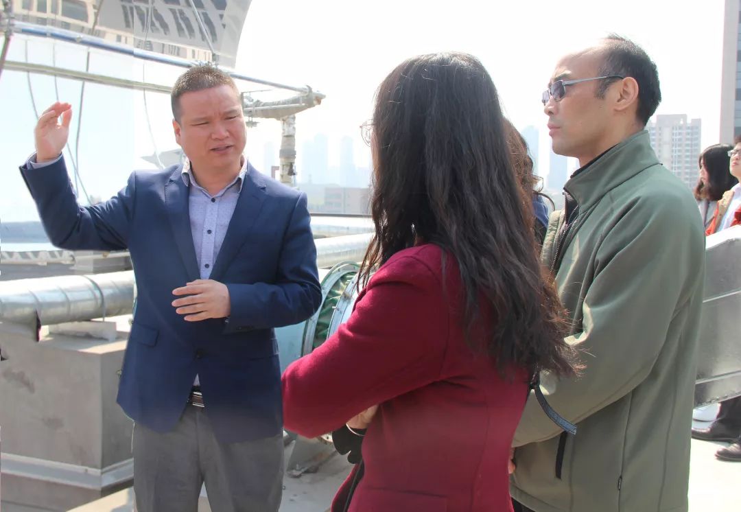 谈求吧物联创新中心副主任王立波带领参观顶层太阳能装置