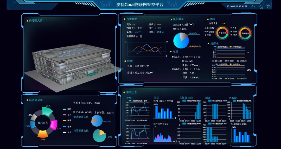 数字孪生技术则是通过三维数字化技术、虚拟现实技术、物联网技术,结合谈求吧Coral智能物联网管理平台,将物理设备的各种属性映射到虚拟空间中,形成具备全要素的数字孪生镜像,更利于优化设计、制造、管理和服务。可实现对当前状态的评估、对过去发生问题的诊断,以及对未来趋势的预测,并给予分析的结果,且模拟各种可能性,决策者可快速直观的了解智慧化对城市环境、城市运行等状态的提升效果。
