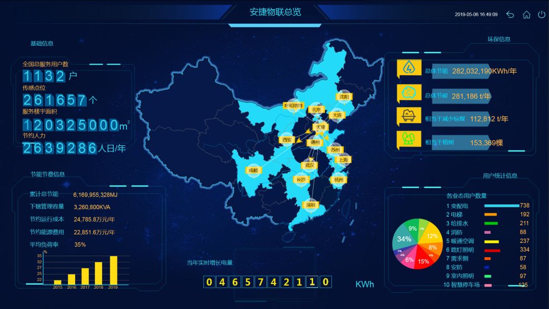 谈求吧能够将建筑物中的变电站、空调、供热、消防、安防、给排水、照明、电梯、地下停车场的动态能全部集中到同一个平台上;目前在全国拥有1000余个用户,其中大多数为高端用户;在用户端安装传感器近27万,每年节省运维费用和能源费用超过5亿元。