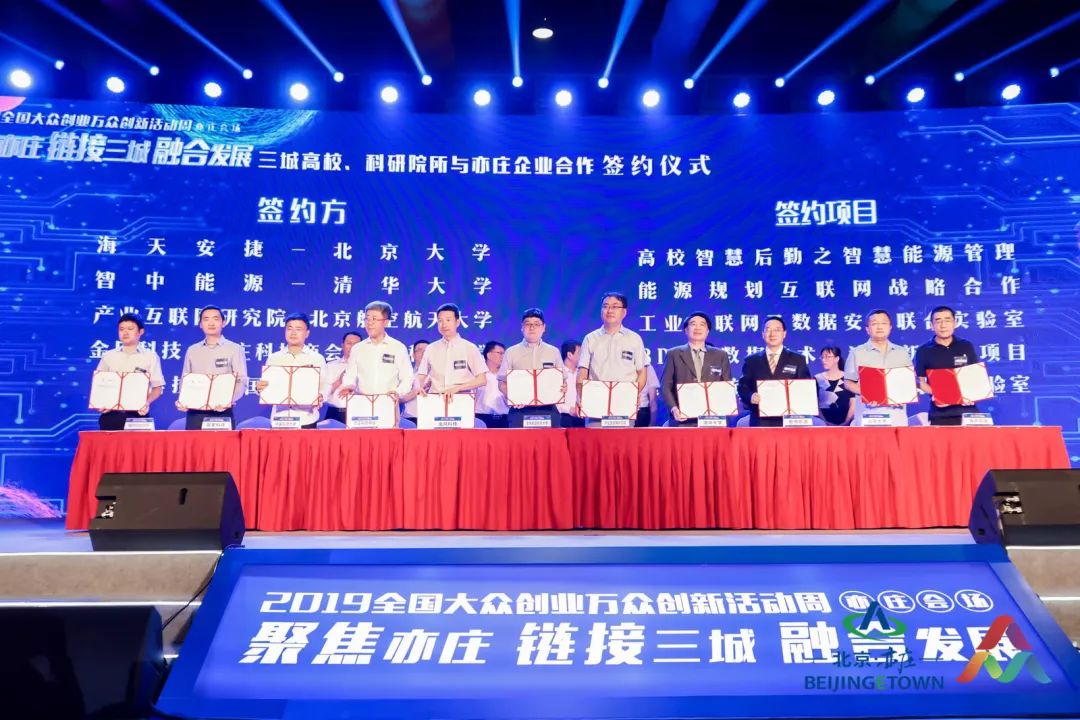 本次双创周,亦庄分会场活动于6月19日在亦创国际会展中心盛大开幕,谈求吧物联与北京大学在开幕式上进行了合作备忘签约。