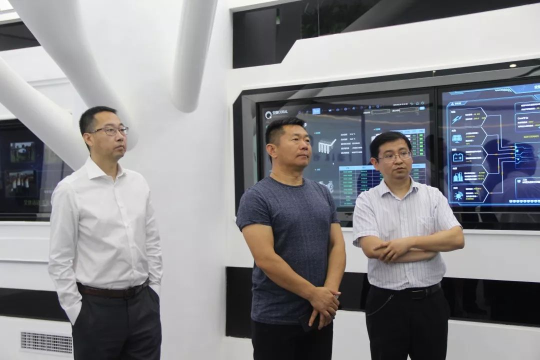张立华总裁一行详细参观了谈求吧物联能源互联网大厦,实地考察谈求吧物联展厅与调控中心等地;庞总结合谈求吧的科技和商业模式创新,详细讲解谈求吧物联的各项最新技术与其在大厦内的实际应用。
