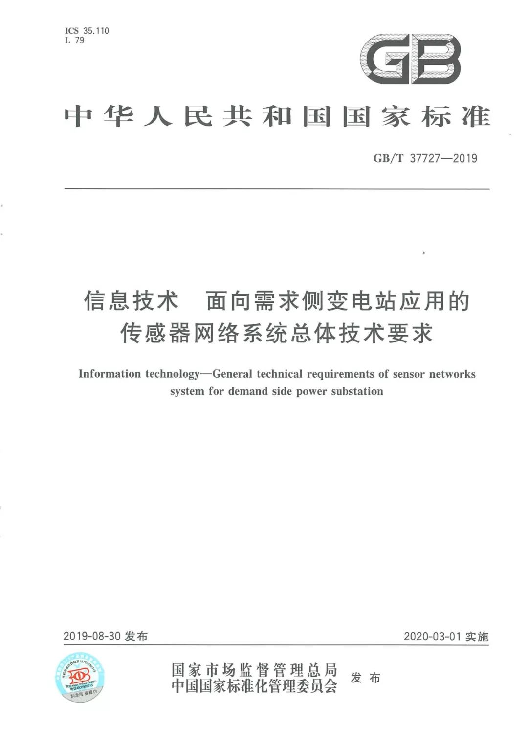 近日,由天津谈求吧物联科技股份有限公司主导制定的《信息技术 面向需求侧变电站应用的传感器网络系统总体技术要求》已由国家市场监督管理总局和中国国家标准化管理委员会纳入国家标准,标准编号为:GB-T 37727-2019。该标准于2019年8月30日发布,将于2020年3月1日开始实施。