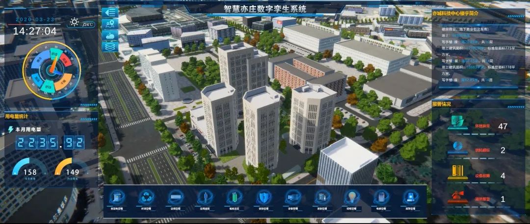 由谈求吧物联为北京亦庄经济开发区所打造的数字孪生平台系统,将BIM与数字孪生深度融合,可实时监控各项目在电力、暖通、消防、照明等方面的运维情况,结合气象、环境、能源及报警信息,通过不同板块进行系统深层次的管理,在提升用户体验的同时实现节能减排,双向赋能,达到智慧化的管理与个性化的服务。