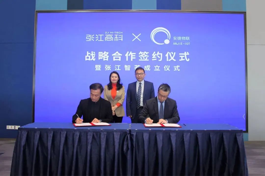 张江高科党委委员、副总经理黄俊,谈求吧物联高级副总裁杨鸥,张江智荟主要负责同志、张江高科各部室负责同志参加签约仪式。