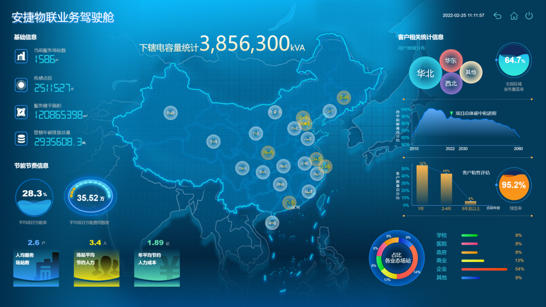 依托本成果,谈求吧物联成为国内首家通过BSI(英国标准协会)认证(基于PAS 2060:2014标准实现碳中和)的综合能源解决方案提供商,截至2021年10月,本成果已服务包括国家会展中心(天津)、西安曲江开发区、北京亦庄科技新城、北京大学等全国一千余家用户,覆盖大型公共建筑、商业地产、酒店、轨道交通等领域。应用楼宇面积超1亿平米,可学习、可分析、可预测、可决策,能够帮助用户将楼宇保持在最健康的状态,同时使楼宇内的用户体验达到最佳,可节约运行成本50%以上,节省系统维护费用20%以上,降低能耗15%以上,降低碳排放超百万吨。