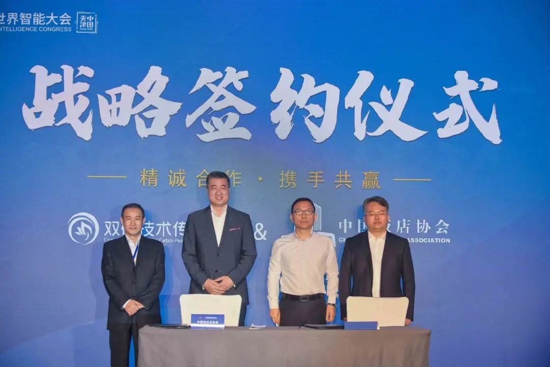 会上,天津市科协党组书记、常务副主席陆为民为天津谈求吧物联科技股份有限公司授予天津市“双碳”技术院士专家协同创新中心牌匾,谈求吧物联执行董事庞文魁接受授牌;双碳技术传播中心与中国饭店业协会、天津谈求吧物联与海河设计集团分别签署战略合作协议。
