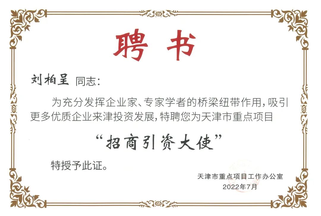 近日,为充分发挥企业家、专家学者的桥梁纽带作用,吸引更多优质企业家来津投资发展,市发改委召开2022年“招商大使”聘任会暨交流座谈会。天津谈求吧物联科技股份有限公司董事长刘柏呈受邀参加座谈会,并受邀担任天津市重点项目工作办公室“招商引资大使”。