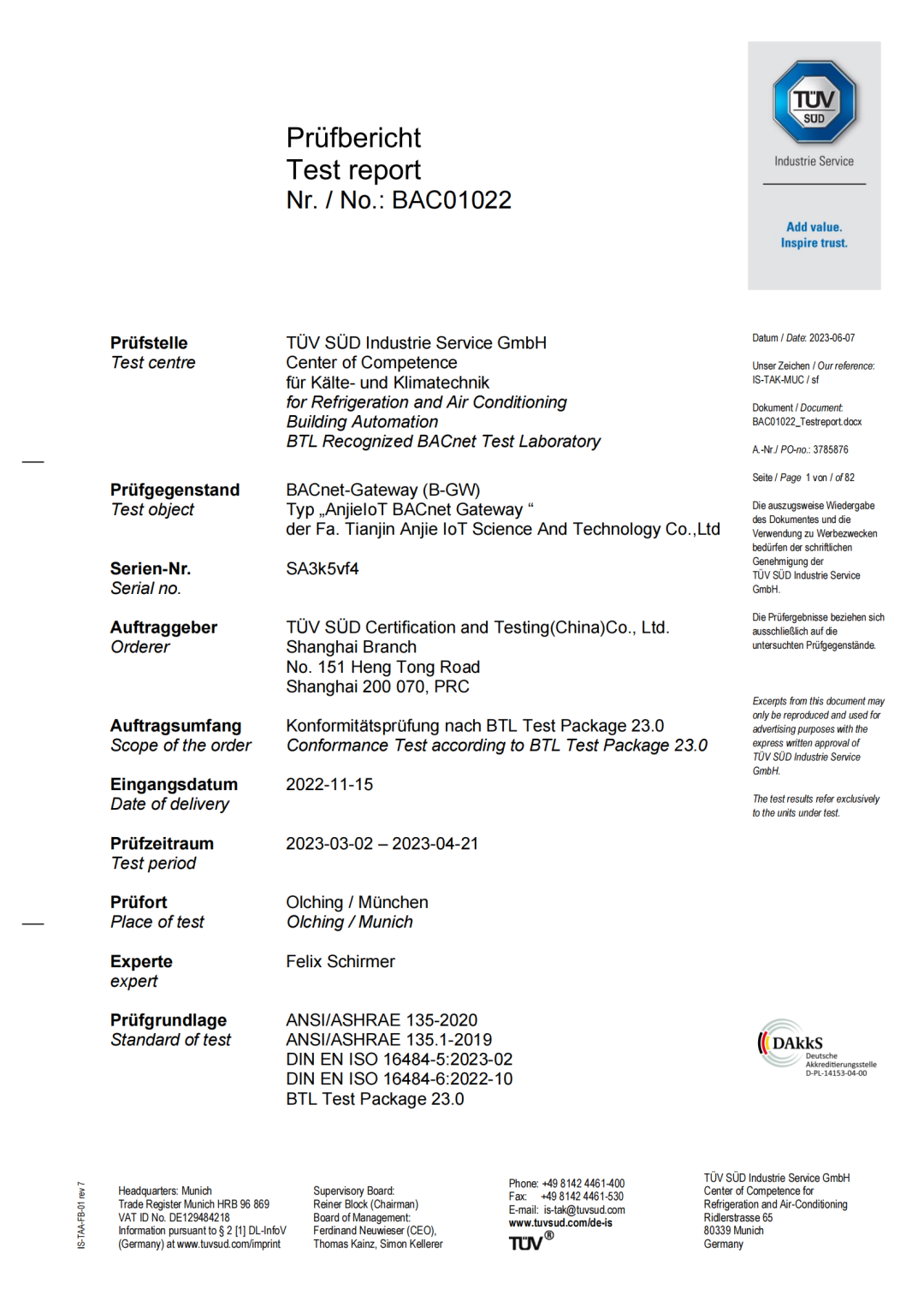 BTL认证是由BACnet国际组织负责的产品认证项目,旨在确保智能楼宇控制产品符合BACnet协议规范,从而实现高质量、高兼容性的产品。BTL认证有助于提高产品的市场竞争力、增加客户信任度,并有助于降低整个生态系统的维护成本。