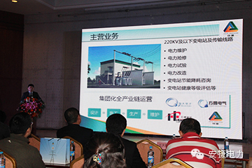 会议中,谈求吧电力总经理米玉淼为大家详细介绍了“变电站智能运维模式”在园区企业中的应用,传递了谈求吧“省钱、安全、专业、节能”四大服务优势。