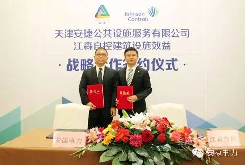 10月22日,天津谈求吧公共设施服务有限公司与江森自控在天津签署战略合作协议,双方将围绕节能服务产业结成联盟,发挥各自所在领域的优势与资源,帮助天津乃至全国推进新型能源与节能推广工作,从而加快资源节约型、环境友好型社会的建设步伐。