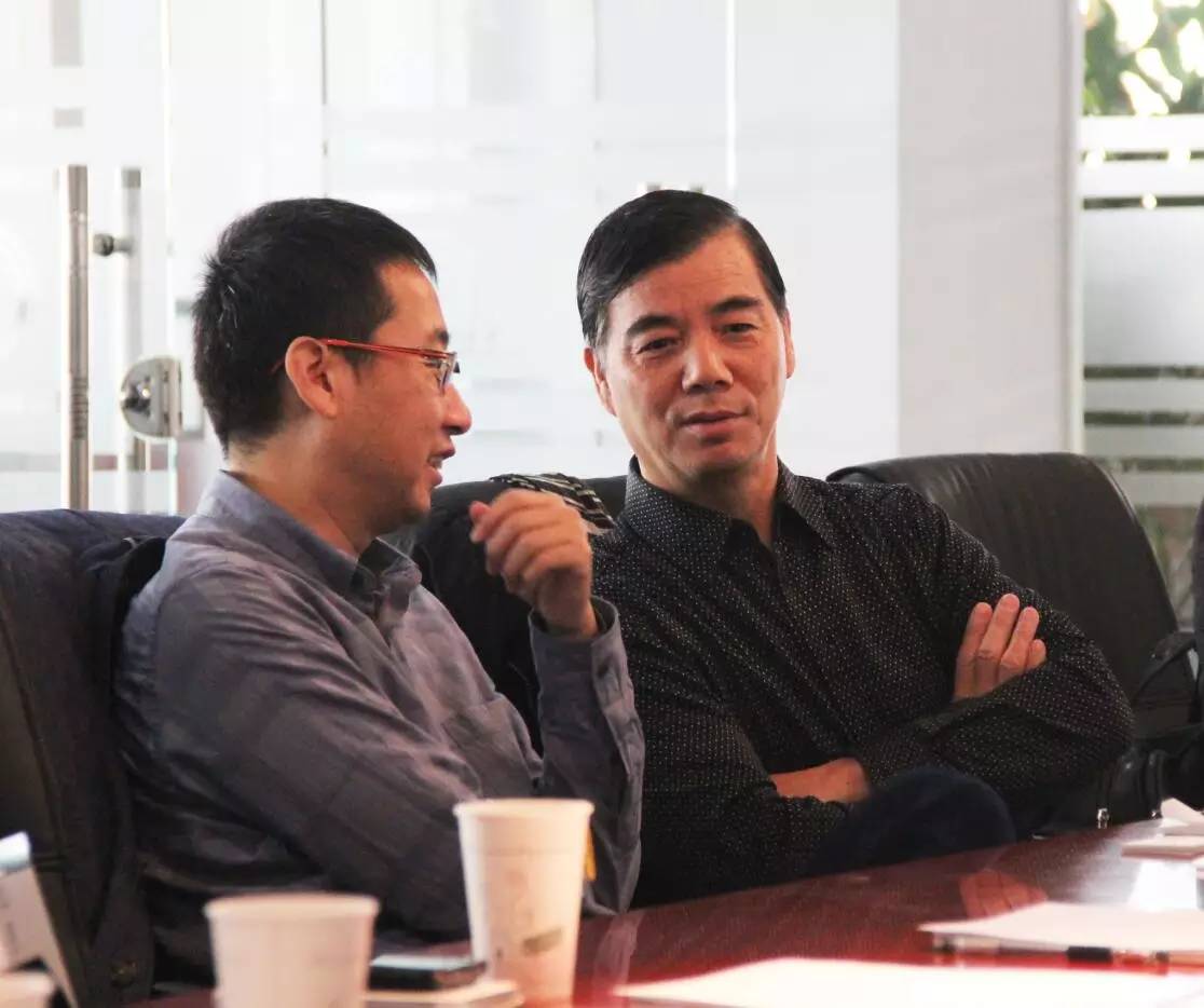 (谈求吧电力董事长庞文魁(左)与天津市节约用水事务管理中心原副主任张金鹏教授(右)会谈)