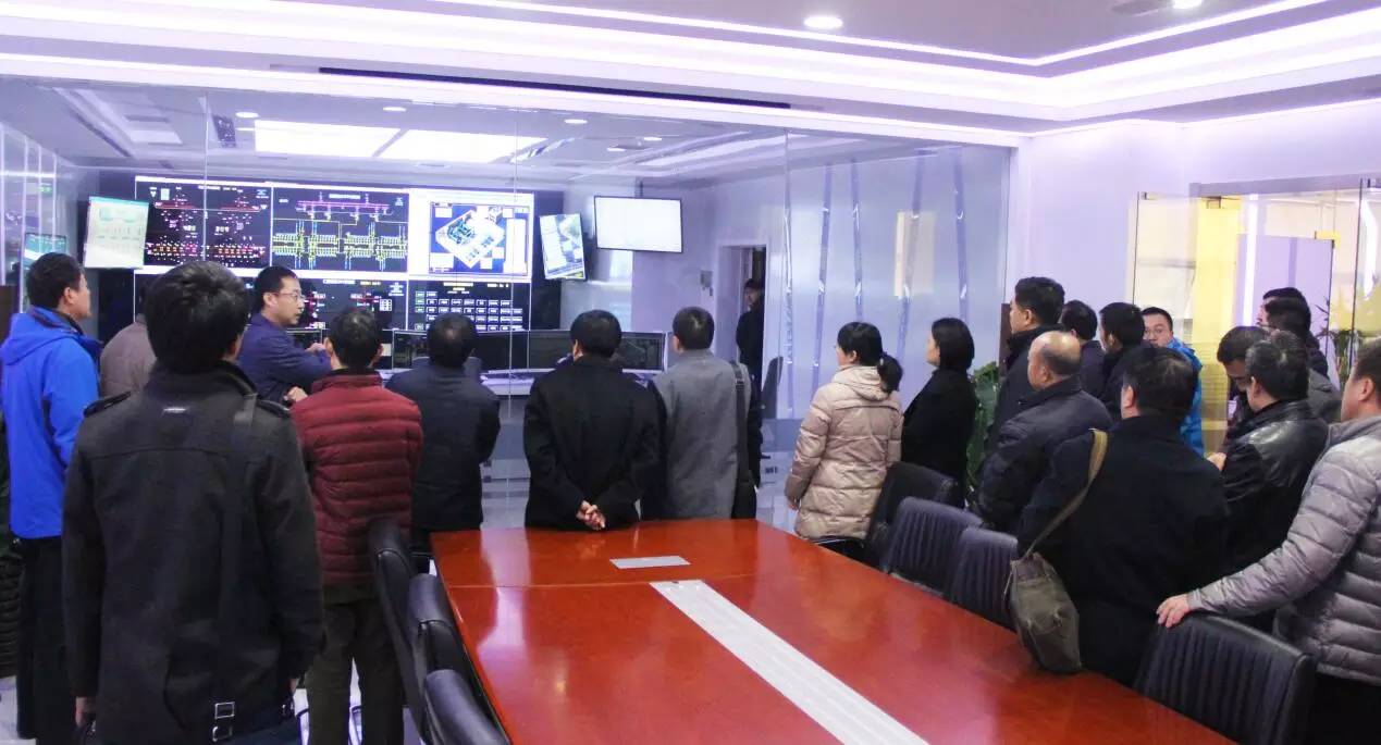 (与会人员参观谈求吧公司智能电力维护系统集控中心)