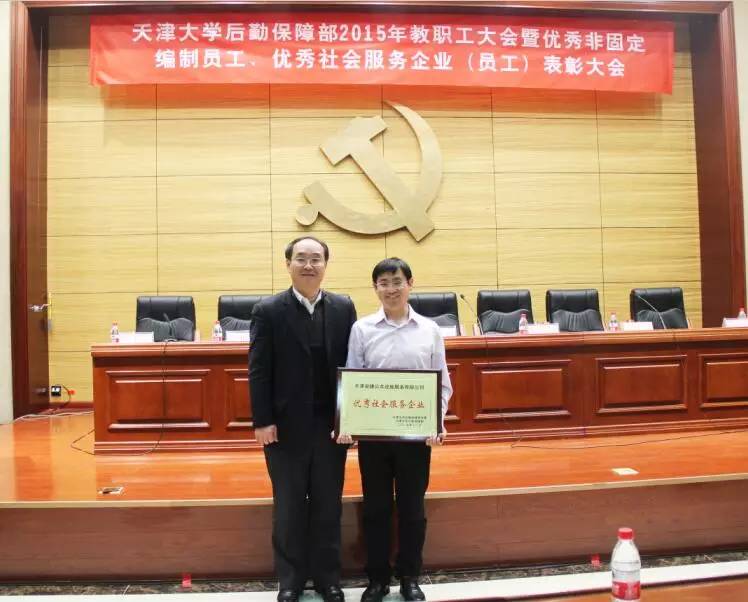 2015年12月30日,“天津大学后勤保障部2015年教职工代表大会暨优秀非固定编制员工、优秀社会服务企业(员工)表彰大会”在天津大学成功举办,谈求吧电力凭借强大的技术支持和优秀的电力服务质量,喜获“天津大学2015年优秀社会服务集体”荣誉称号。