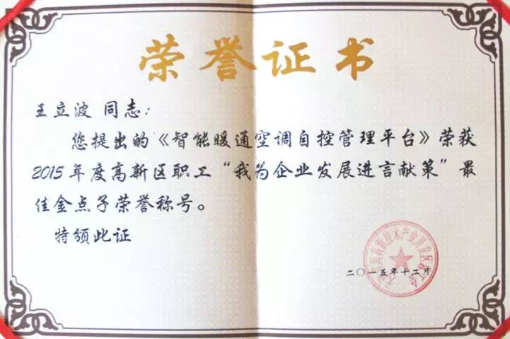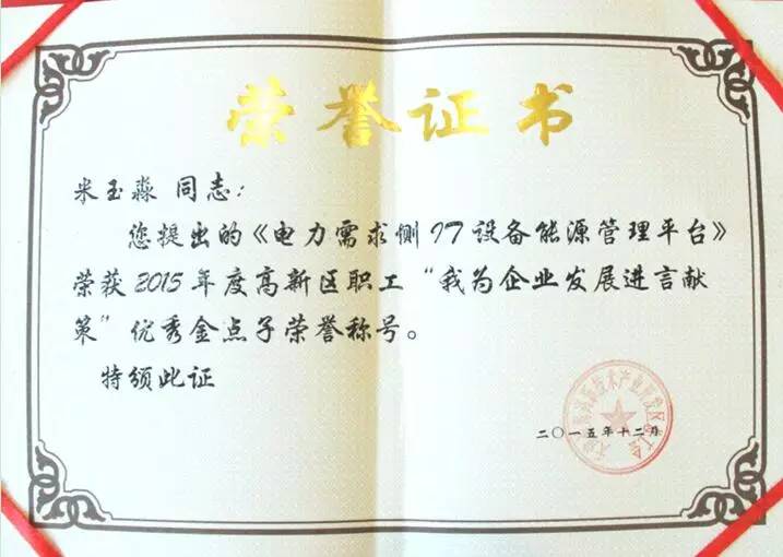 表彰大会上,谈求吧电力副总经理覃岭从天津大学校领导张力新手中接过“优秀社会服务集体”的奖牌。这份荣誉不仅是天津大学对于谈求吧电力优秀服务质量的高度肯定,更是集团在2015年继“滨海新区科学技术进步一等奖、天津市科学技术进步二等奖”之后收获的又一项殊荣。在谈求吧的荣誉墙上,现已大大小小挂满了近二十种集团荣誉:最佳雇主奖、先进基层党组织、高新技术企业、天津市认定企业技术中心,天津市专利试点企业、院士专家工作站、天津大学电力新技术研究开发实验室、华北电力大学研究生工作站。谈求吧与中科院、天津大学、华北电力大学等单位和高校开展产学研合作,并与倪光南院士成立了院士专家工作站,共同助力创新发展。更加值得欣喜的是,在年末之际,由海谐集团副总经理米玉淼和海谐集团创新中心副主任王立波分别提出的《电力需求侧IT设备能源管理平台》和《智能暖通空调自控管理平台》更是荣获了2015年度高新区职工“我为企业发展进言献策”最佳金点子荣誉称号。